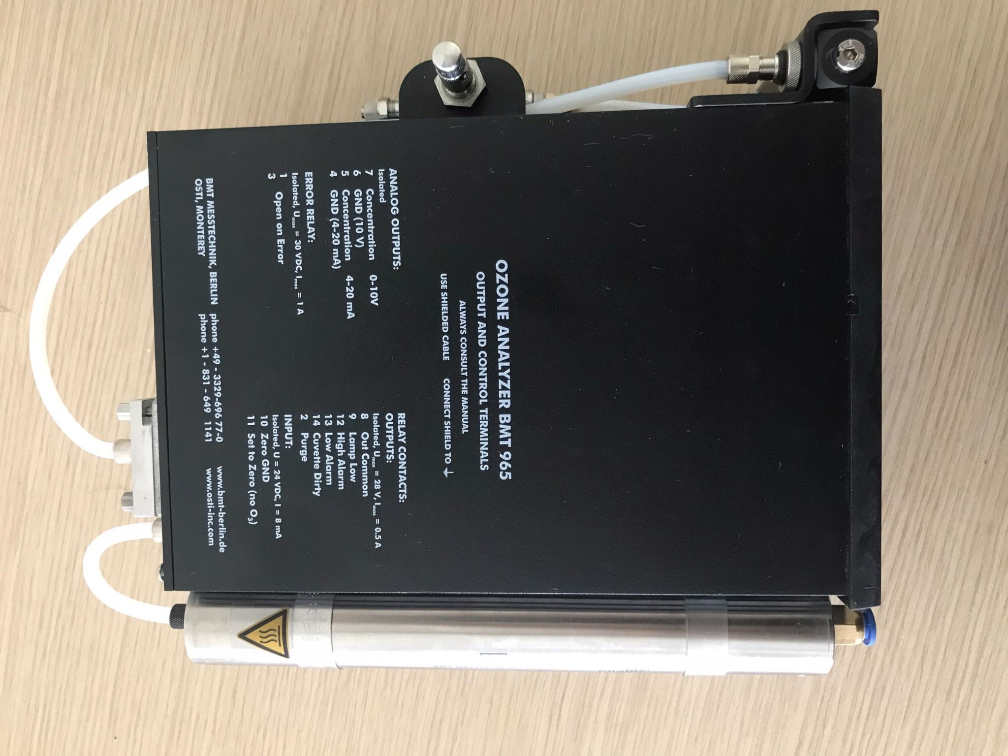 Phiên bản hàng đầu của MÁY PHÂN TÍCH OZONE BMT 965, thiết bị di động với nguồn điện DC gắn trên tường, van tiết lưu, lưu lượng kế, hộp xúc tác, bộ lọc khí mẫu.